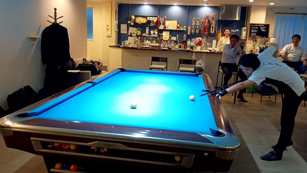 そんな河原選手が経営するお店「アンセーズ」(大阪市中央区)で社内ビリヤード大会を行いました。